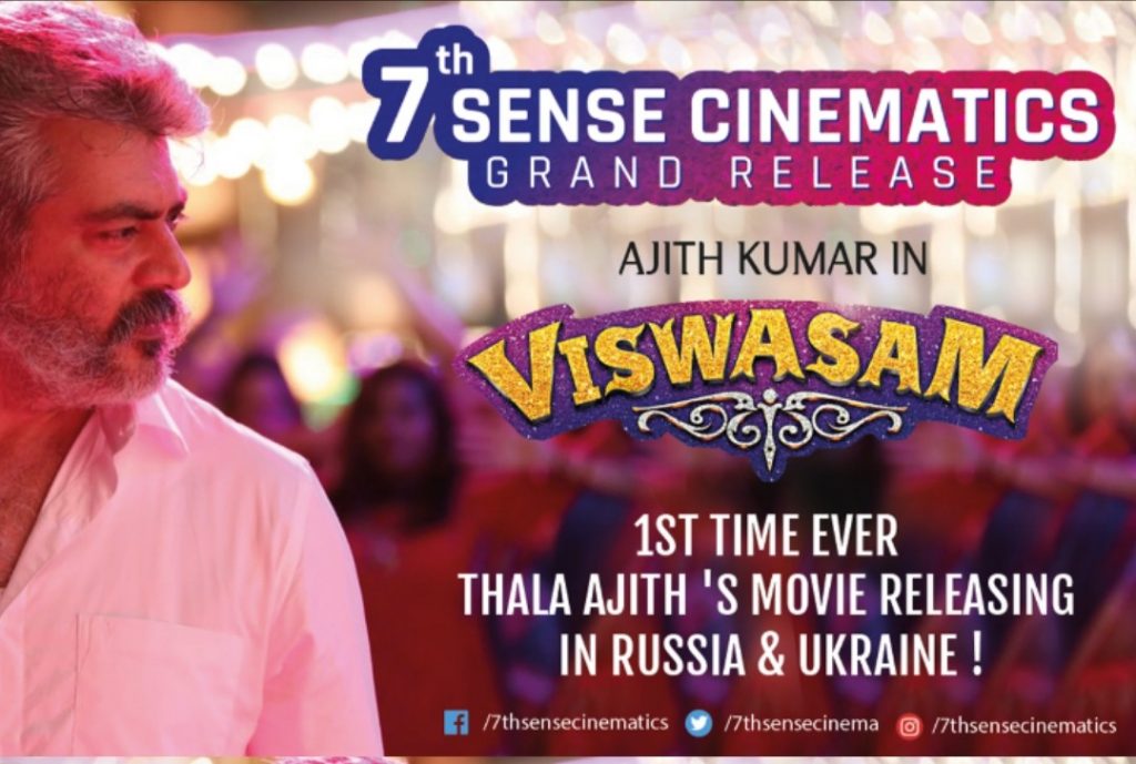 அஜித்குமார் நடித்துள்ள விஸ்வாஸம் வர்த்தக வட்டாரங்களில் மிகவும் சாதகமான சூழ்நிலையை உருவாக்கியிருக்கிறது. 2019ஆம் ஆண்டில் மிகுந்த எதிர்பார்ப்புக்குரிய திரைப்படங்களில் ஒன்றான, சத்யஜோதி ஃபிலிம்ஸ் தயாரித்துள்ள இந்த திரைப்படம், இந்தியாவிலும் வெளிநாடுகளிலும் ஒரு மிகப்பெரிய வணிக சந்தையை கொண்டுள்ளது. தற்போது ரஷ்யாவில் மிக அதிகமான திரையரங்குகளில் வெளியாகும் முதல் தமிழ் படம் என்ற சாதனையை படைத்திருக்கிறது. ரஷ்யா மற்றும் உக்ரேன் நாடுகளில் திரைப்படத்தை வெளியிடும் செவன்த் சென்ஸ் சினிமேடிக்ஸின் பிரசாந்த் அவர்கள் இதை அதிகாரப்பூர்வமாக அறிவித்துள்ளார்.
