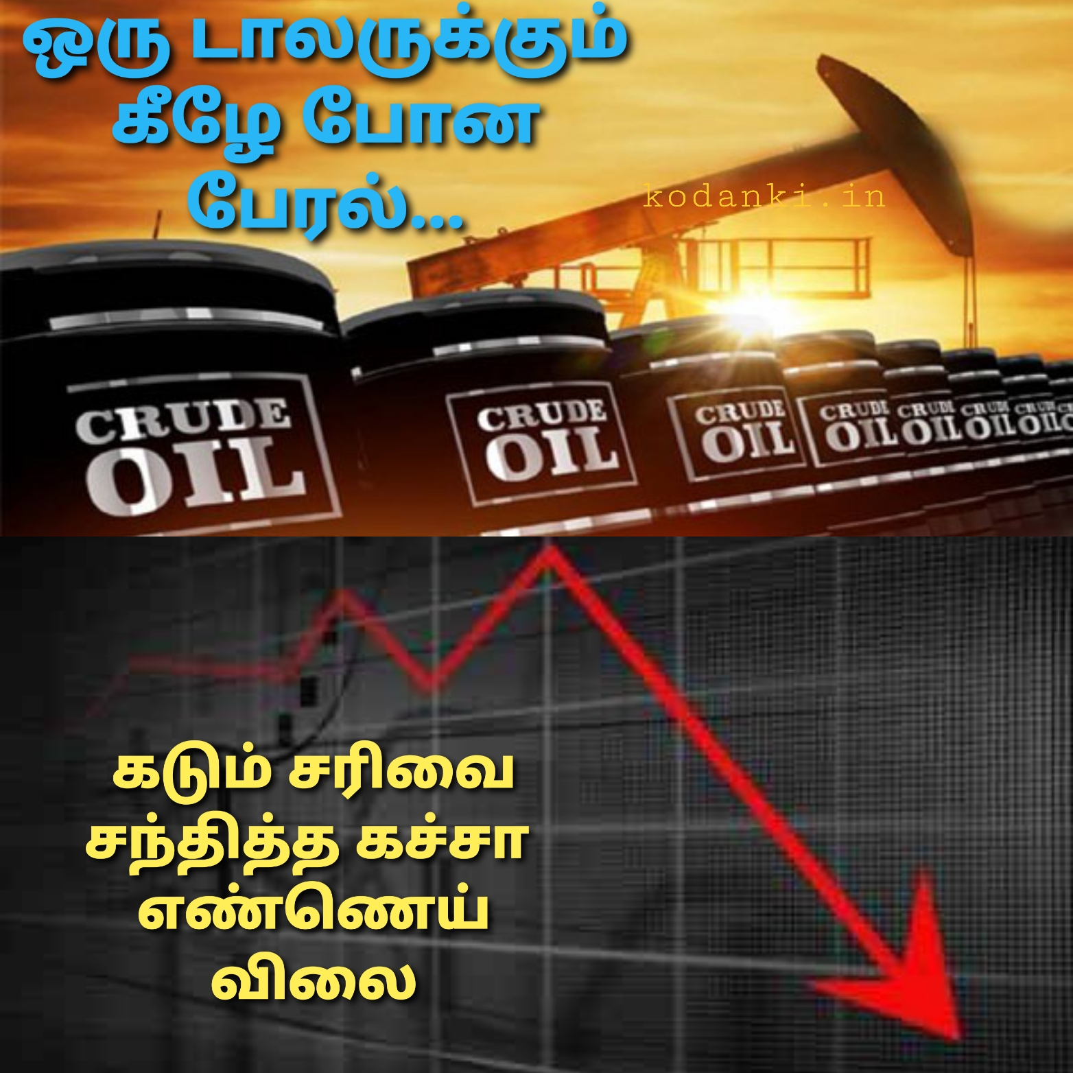 கச்சா எண்ணெயின் விலை ஒரு நாளில் யாரும் நினைத்துக்கூட பார்க்க முடியாத அளவுக்கு வரலாற்றில் முதல்முறையாக இப்படி சரிவை சந்தித்துள்ளது குறிப்பிடத்தக்கது.