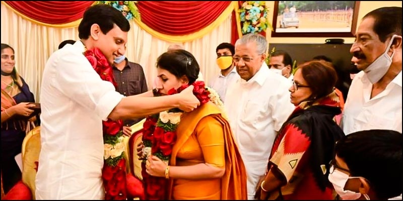 கேரளா முதல்வர் பினராயி விஜயனின் மகளும், தகவல் தொழில்நுட்ப தொழில் முனைவோருமான வீணாவுக்கு இன்று திருமணம் நடந்தது. அவர் இந்திய ஜனநாயக வாலிபர் சங்கத்தின் தேசிய தலைவர் முகமது ரியாஸை கரம் பிடித்துள்ளார். இவர்களது திருமணம் இன்று திருவனந்தபுரத்தில் உள்ள முதல்வரின் இல்லத்தில் எளிய முறையில் நடந்தது.