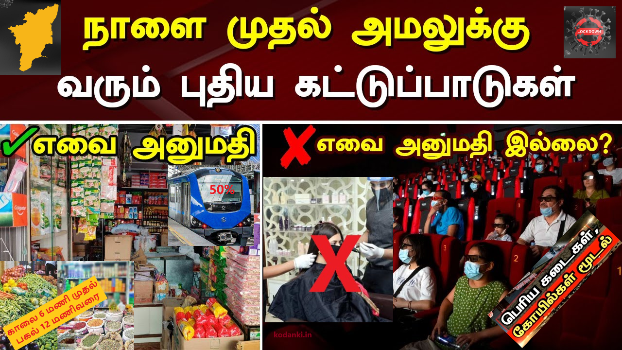 இந்தநிலையில் தமிழகத்தில் தேர்தல் முடிந்து புதிய அரசு நாளை மறுநாள் பொறுப்பேற்க உள்ளது. அதே நேரத்தில் நாளை முதல் புதிய கட்டுப்பாடுகளும் விதிக்கப்பட்டுள்ளது. இதுதொடர்பான அறிவிப்பு நேற்று முன்தினம் இரவு வெளியிடப்பட்டது. அது நாளை அமல்படுத்தப்பட உள்ளது.