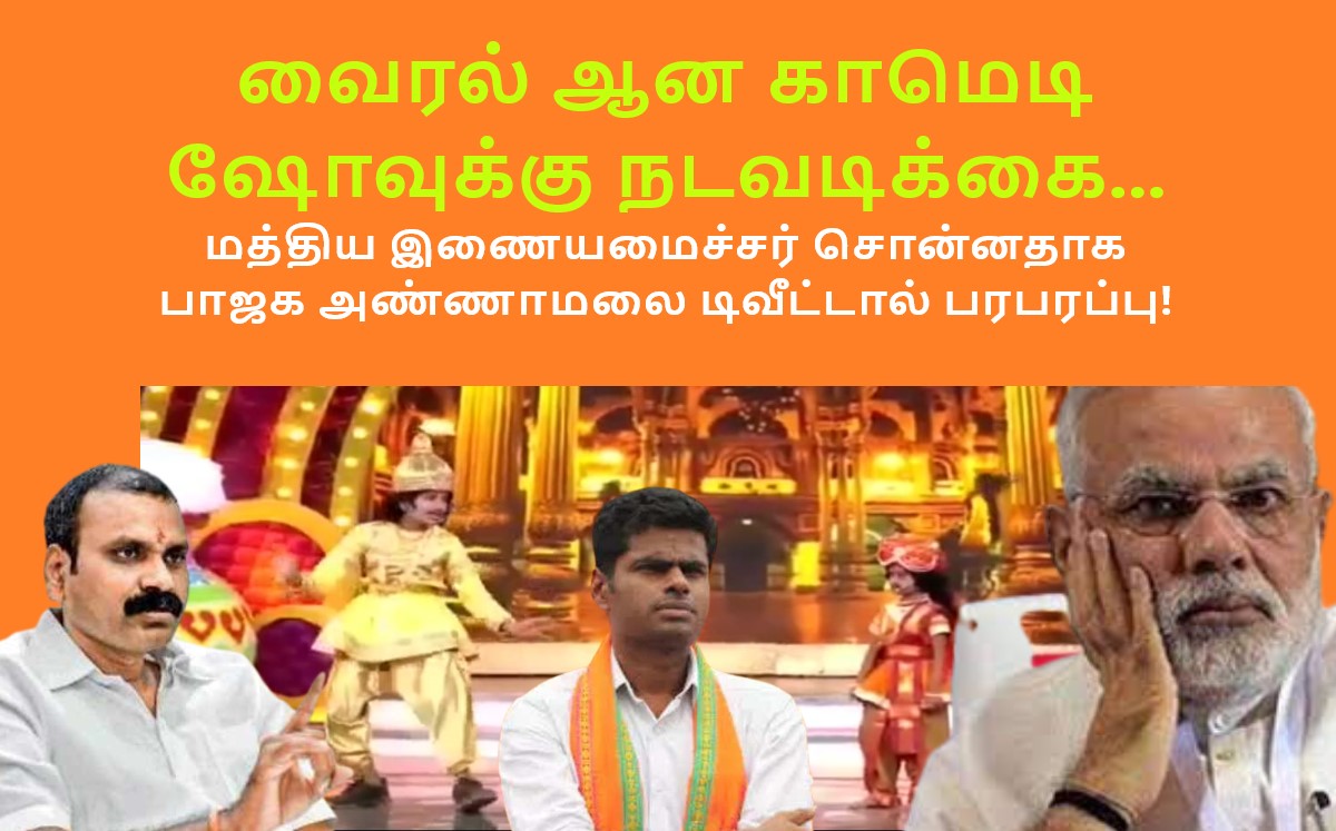 அந்த காமெடி மூலம் பிரதமர் மோடியை இழிவு படுத்திவிட்டார்கள் என்றும் விரைவில் அந்த டிவி மீதும், அந்த நிகழ்ச்சி நடத்தியவர்கள் மீதும் நடவாடிக்கை எடுக்கப்படும் என மத்திய இணை அமைச்சர் எல்.முருகன் கூறியதாக தமிழக பாஜக தலைவர் அண்ணாமலை ஒரு டிவிட் பதிவு போட…