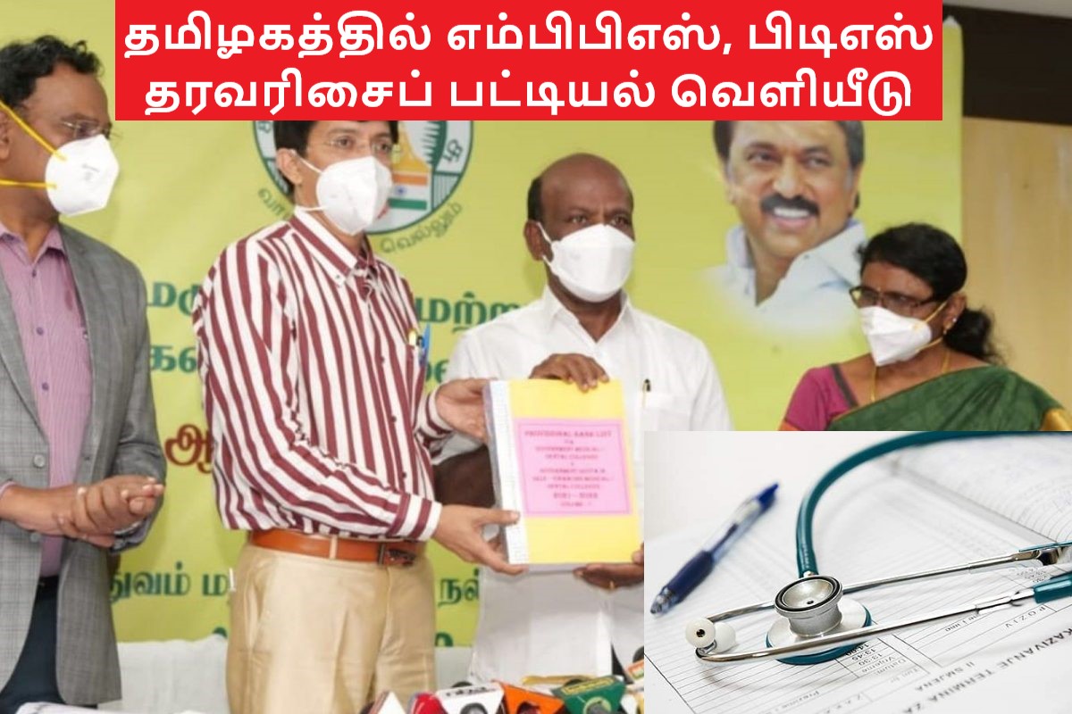 www.tnmedicalselection.net, www.tnhealth.tn.go.in என்ற இணையதளத்தில் தரவரிசை வெளியிடப்பட்டுள்ளது.