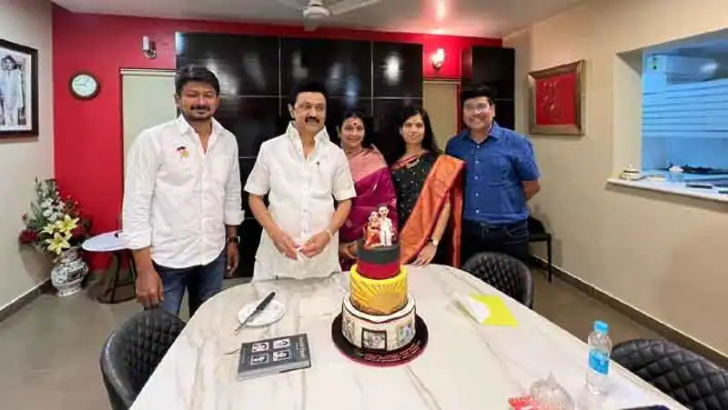 அந்த கேக்கை வெட்டி பிறந்தநாளை மு.க.ஸ்டாலின் கொண்டாடினார். அப்போது, அவருடன் அவரது மனைவி துர்கா ஸ்டாலின், மகன் உதயநிதி ஸ்டாலின், மகள் செந்தாமரை, மருமகன் சபரிசன் உடனிருந்தனர்.