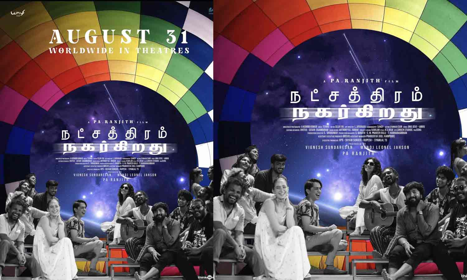 இந்நிலையில், இப்படத்தின் ரிலீஸ்தேதி குறித்த அறிவிப்பு வெளியாகியுள்ளது. அதன்படி, ‘நட்சத்திரம் நகர்கிறது’ திரைப்படம் ஆகஸ்ட் 31-ஆம் தேதி திரையரங்குகளில் வெளியாகும் என இயக்குனர் பா. ரஞ்சித் போஸ்டர் ஒன்றை வெளியிட்டு அறிவித்துள்ளார்.