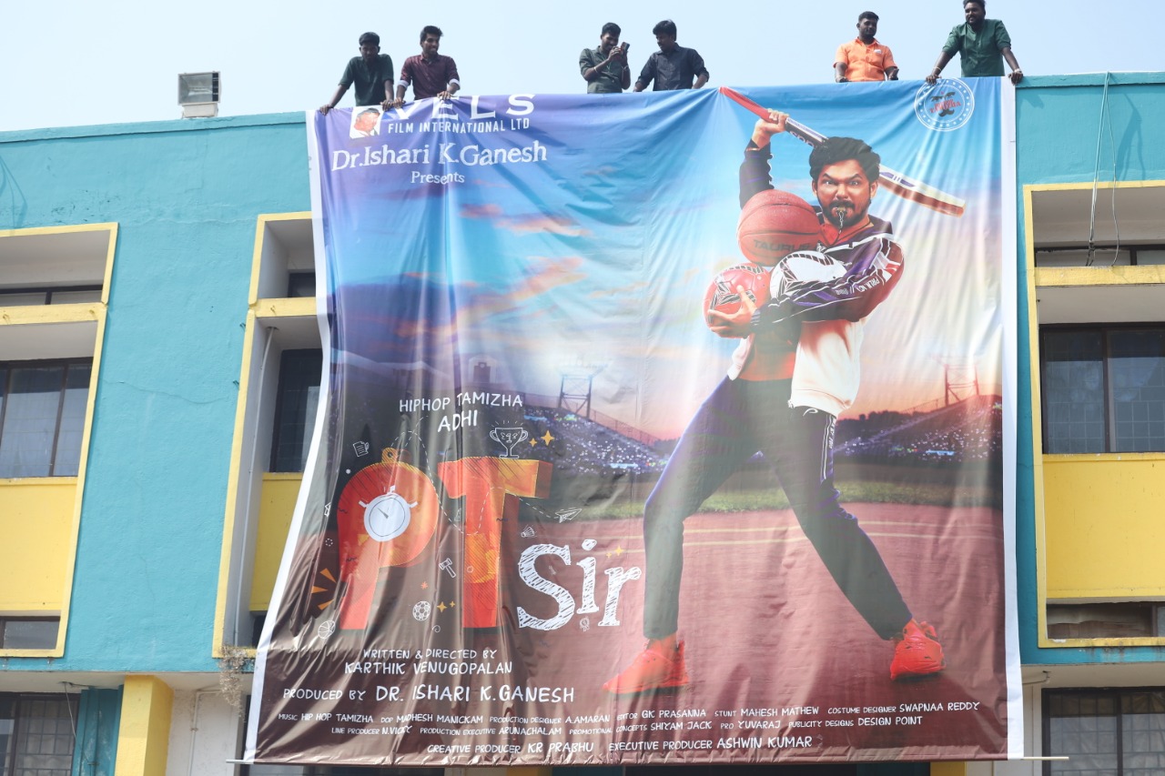வேல்ஸ் பல்கலைக்கழக வளாகத்திலுள்ள வேலன் அரங்கத்தின் முன் அமைக்கப்பட்டிருந்த திறந்த வெளி கிராமிய திருவிழா அரங்கத்தில் ஆயிரக்கணக்கான மாணவ மாணவியர்கள் பொங்கல் திருவிழாவை கொண்டாடிய தருணத்தில், வேல்ஸ் ஃபிலிம் இன்டர்நேஷனல் தயாரிப்பில் ஹிப் ஹாப் தமிழா ஆதி கதையின் நாயகனாக நடிக்கும் புதிய படத்தின் தலைப்பு மற்றும் முதல் பார்வை பிரம்மாண்டமான முறையில் வெளியிடப்பட்டது. படத்திற்கு ‘P T சார்’ என பெயரிடப்பட்டு, அதன் ஃபர்ஸ்ட் லுக் வெளியிடப்பட்டது.