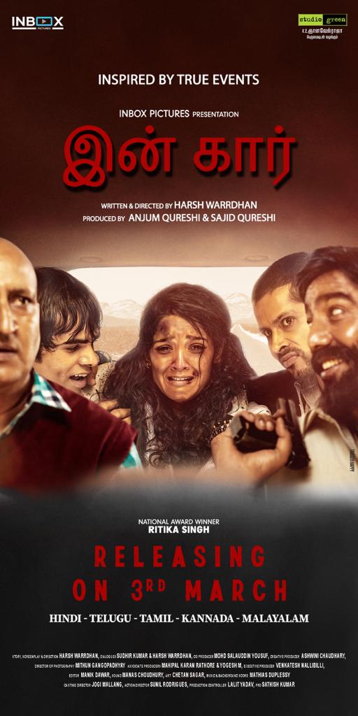 Inbox Pictures சார்பில் அஞ்சும் குரேஷி, சாஜித் குரேஷி தயாரிப்பில், இயக்குநர் ஹர்ஷ் வர்தன் இயக்கத்தில், நடிகை ரித்திகா சிங் முதன்மை கதாப்பாத்திரத்தில் நடித்துள்ள திரைப்படம் “இன் கார்”. கடத்தப்பட்டு வன்புணர்வுக்குள்ளாகும் பெண்ணின் வலியை, அவளது பார்வையில் அந்த கடத்தல் சம்பவத்தின் வழியாகவே சொல்லும் படமாக இப்படம் உருவாக்கப்பட்டுள்ளது.